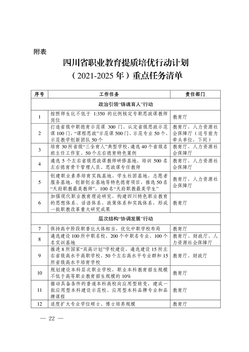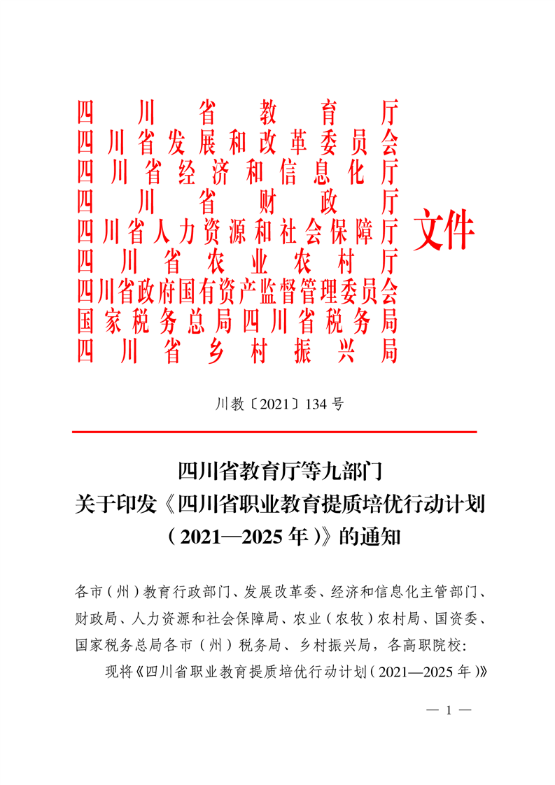 四川省教育厅等九部门关于印发《四川省职业教育提质培优行动计划(2021—2025年)》的通知