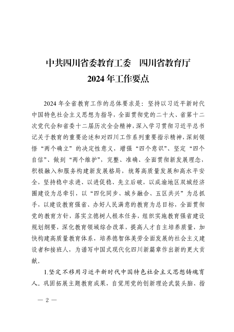 中共四川省委教育工委 四川省教育厅 关于印发 2024 年工作要点的通知